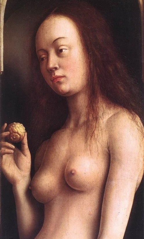 Jean Perréal, Jan et Hubert Van Eyck, parmi les premiers peintres officiels à signer de leur nom. Portraits redoutablement officiels en effet, sauf Eve, dans l’Agneau Mystique.