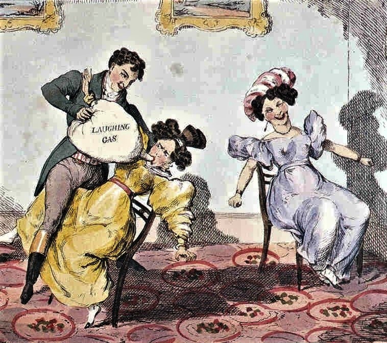 Davy ne put cependant pas résister à glisser un peu de science à la fin de ces séances: il testa les réponses sensorielles des convives qu’il invitait à suivre la flamme de bougies ou à écouter des tintements de clochettes. Il essaya aussi le pouvoir suggestif de sachets placebo pleins d’air normal, pour voir si ceux qui les respiraient éprouvaient toujours des sensations extrêmes (pas vraiment!). Mais, par-dessus tout, il prit note des réactions individuelles, voire personnelles, des divers sujets au gaz hilarant. Certains devenaient agressifs ou déclamaient des phrases incompréhensibles. Une femme sortit en trombe dans la rue pour aller jouer à saute-mouton avec un gros chien, ce dont elle éprouva une grande honte rétrospective. Le plus souvent, les gens s’effondraient sur le sol en se tordant de rire.