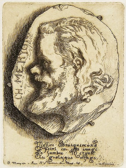 Bracquemond l’a tenté dans un médaillon gravé que je juge un chef-d’œuvre. L’homme au front énorme, aux yeux enfoncés, aux joues creuses, serre les mâchoires et regarde droit. Il semble sculpté dans quelque pierre vétuste, et ses traits sont déjà rongés par le temps. Images d’un obsédé que poursuivent des visions, d’un étrange inconnu cheminant dans l’obscurité du siècle, où le discernent seulement les magnifiques éloges des maîtres et l’admiration de quelques amis [dont Hugo et Baudelaire].