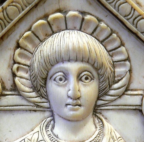 La dynastie théodosienne, à droite Galla Placidia: une interprétation classique, aujourd’hui abandonnée, la miniature datant du IIIéme siècle.